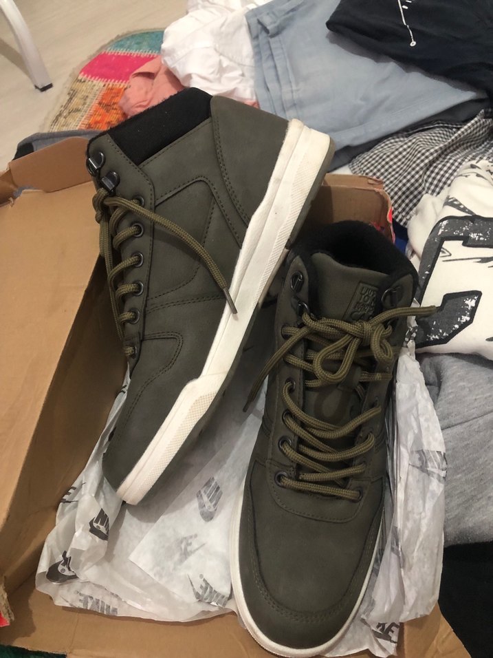Kahverengi kamuflaj desenli, bağcıklı ve beyaz kauçuk tabanlı erkek bot ayakkabıgünlük sokak stili için uygundur.