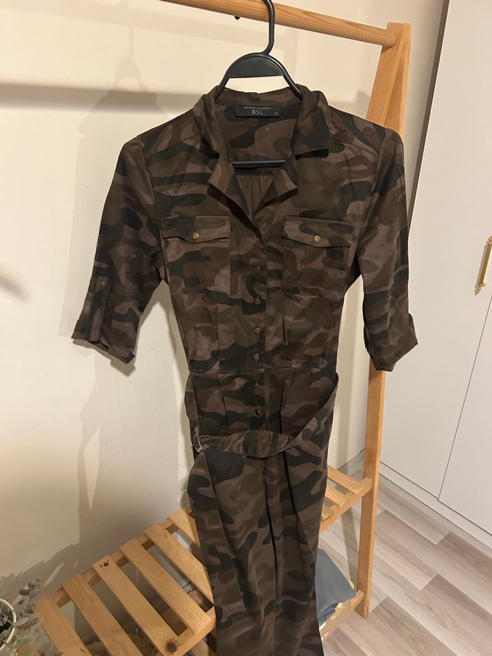 Kahverengi Kamuflaj Bel Detaylı Tulum