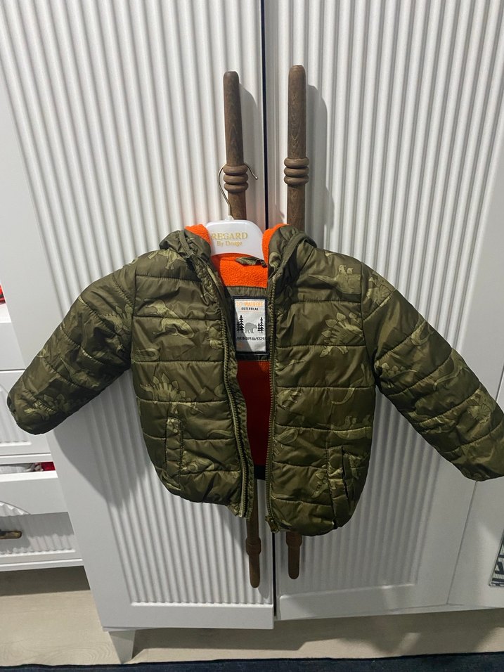Bu erkek çocuk montu, kahverengi kamuflaj desenli, kemerli ve yaka detaylıdır. Yumuşak ve sıcak dokusu ile sokak modasına uygundur.