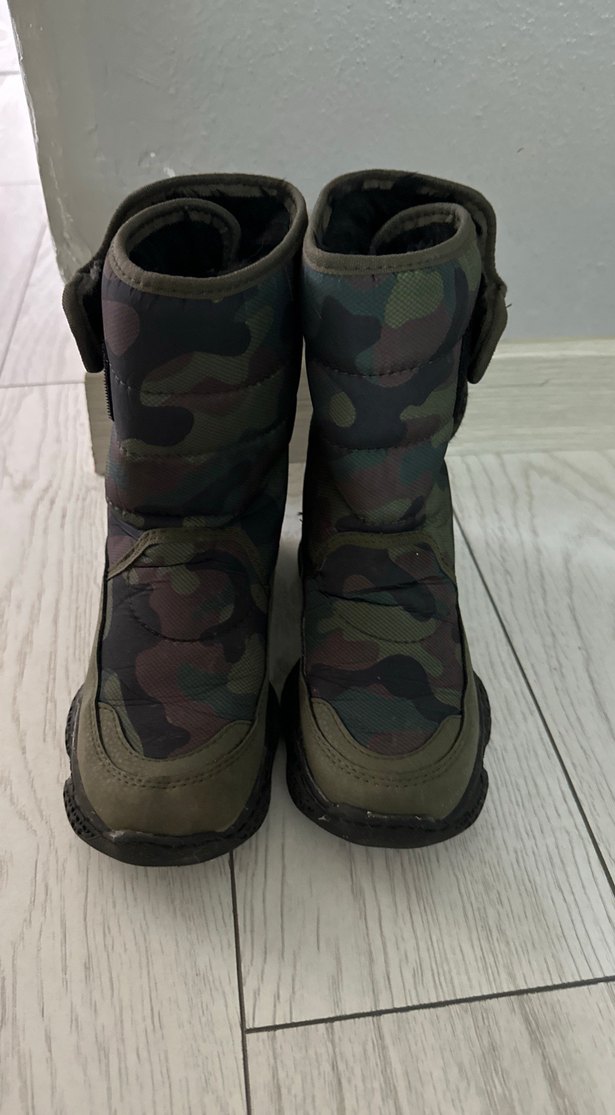 Kauçuk malzemeden, kahverengi kamuflaj desenli, erkek çizme.İçi kürklü