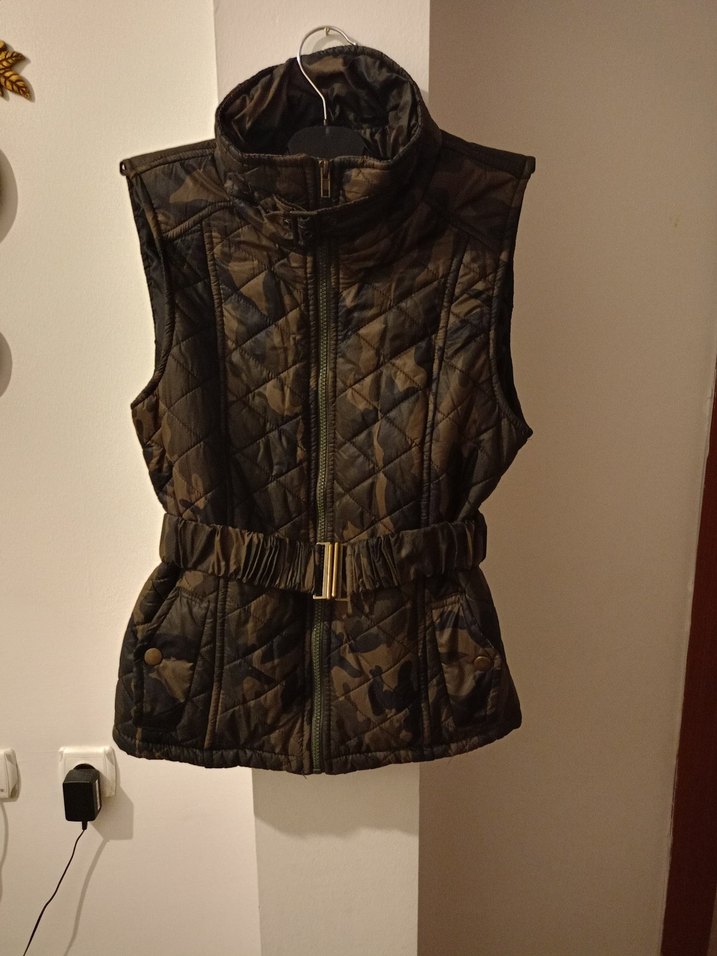 Kahverengi Kamuflaj Desenli Kemerli Kadın Yelek