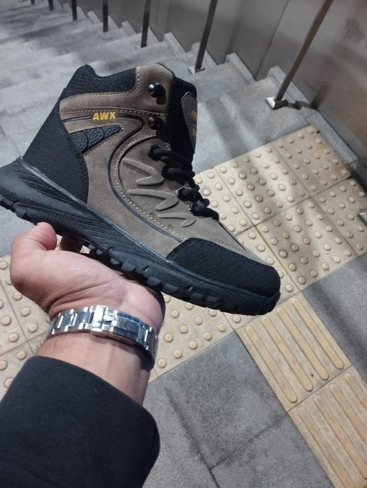Kahverengi kamuflaj desenli, kauçuk tabanlı erkek outdoor botu. Velcro kapamalı, dış mekan kullanımı için dayanıklı ve şık sokak stili ayakkabı.