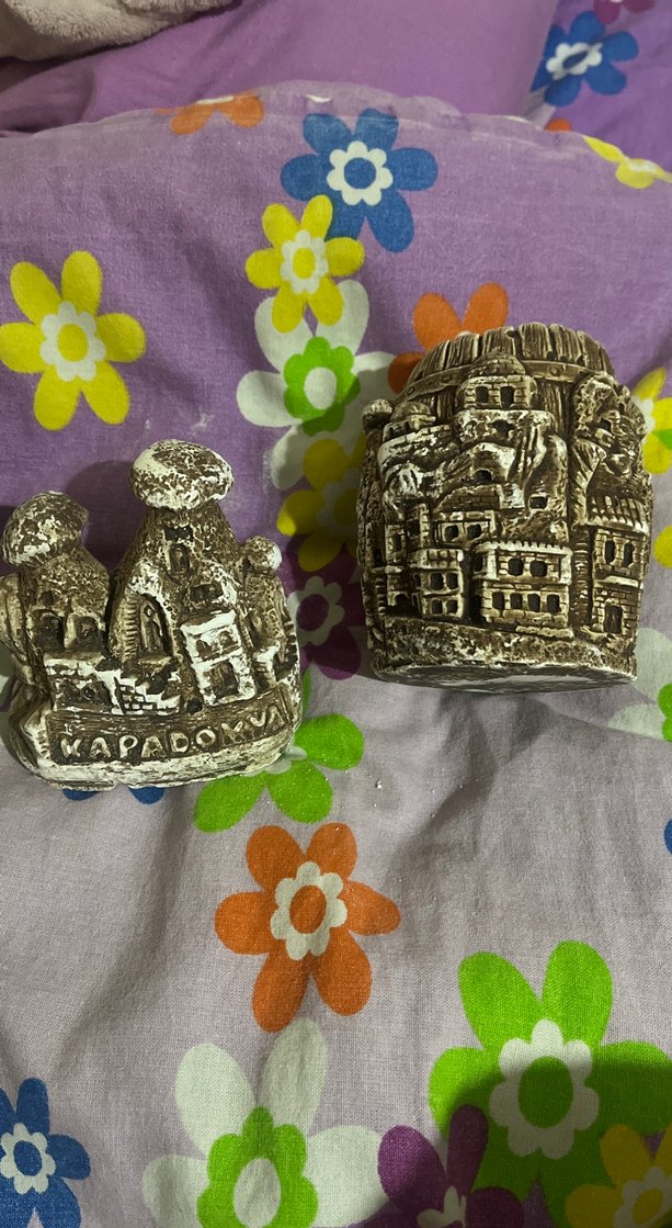 Kahverengi figürinler, Kapadokya'nın detaylı kaya oluşumları ve mimarisini tasvir ediyor. Koleksiyon için dekoratif ürünler. ️