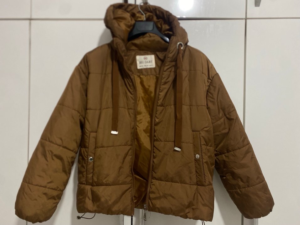 Ayarlanabilir lastikli kahverengi içi astarlı silikonlu mont