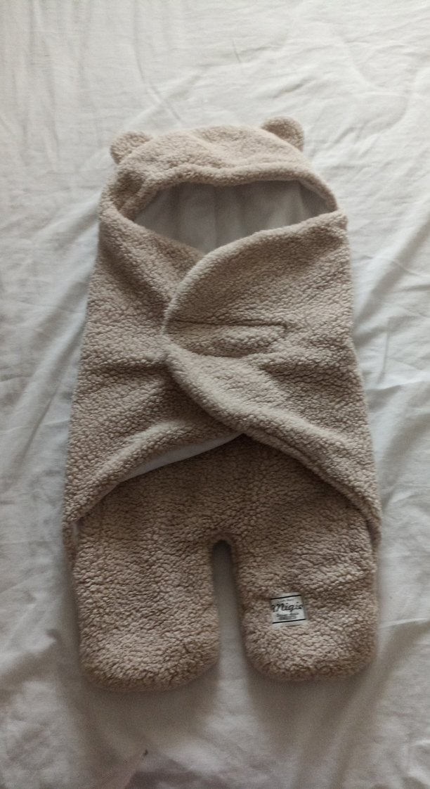Ayıcık kulaklı, yumuşak ve sıcak kahverengi kapüşonlu bebek battaniyesi.