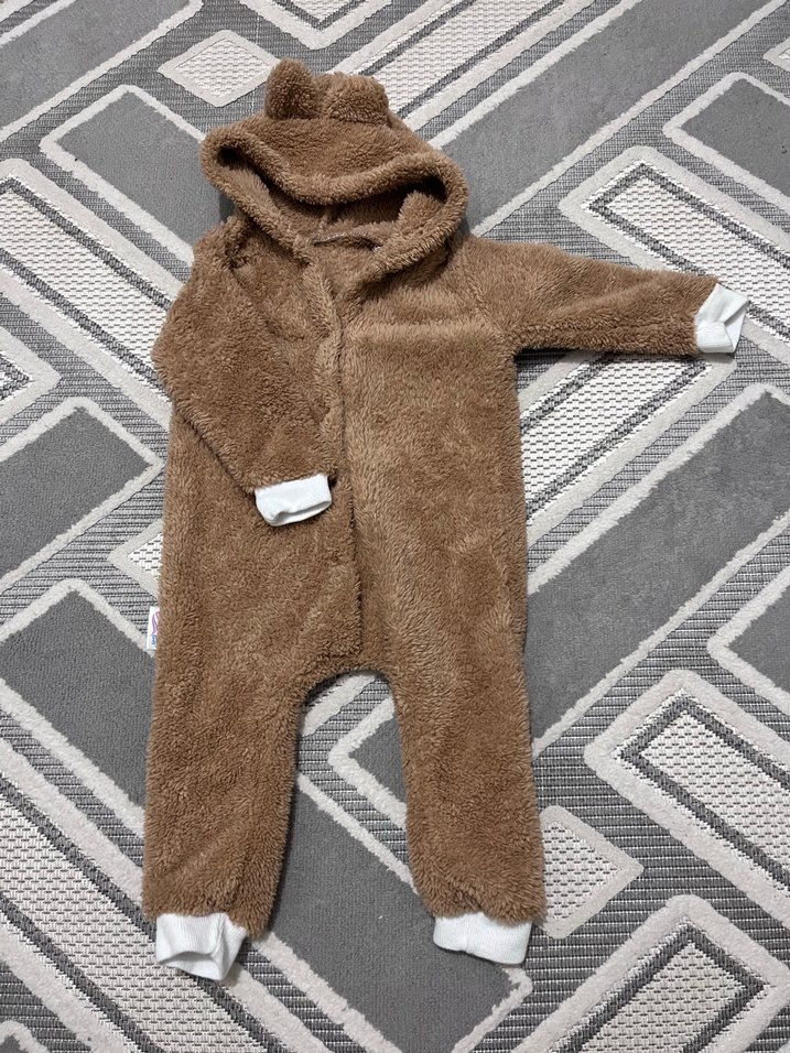 Kahverengi Kapüşonlu Bebek Tulumu