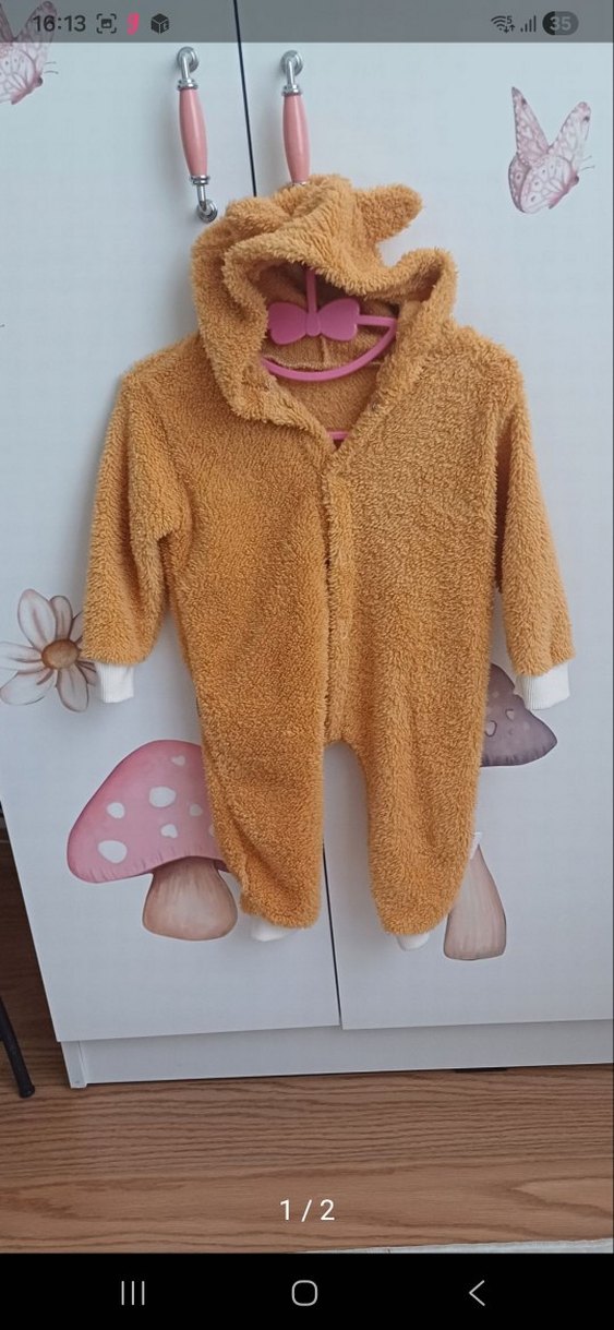 Yumuşak kürk detaylı, kapüşonlu kahverengi bebek tulumu, düz ve pastel tonlarda. ❄️