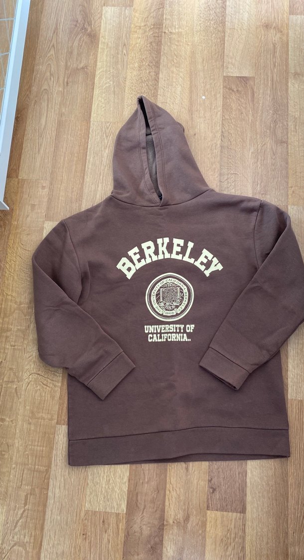 Kahverengi, kapüşonlu sweatshirt, uzun kollu ve Berkeley Üniversitesi baskılı. Yumuşak ve sıcak kumaştan, rahat bol kesim sunar.