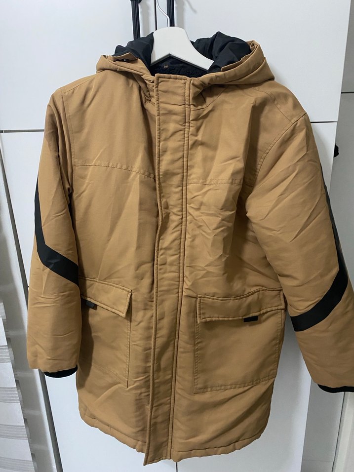 Kahverengi Kapüşonlu Erkek Çocuk Kaban