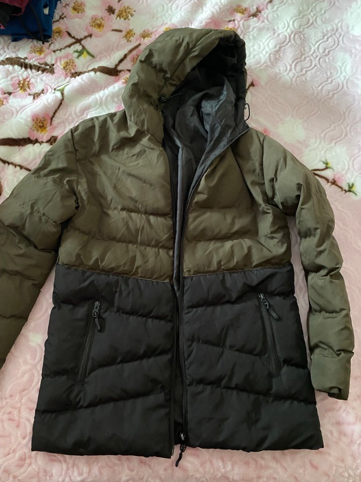 Kahverengi, fermuarlı, kapüşonlu kadın kış montu. Uzun kollu, orta boy, yumuşak ve sıcak kumaştan, günlük kullanıma uygun rahat sokak stili.