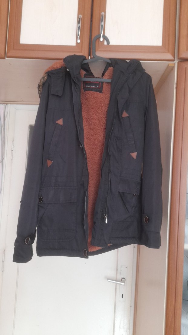 Kahverengi Kapüşonlu erkek Mont