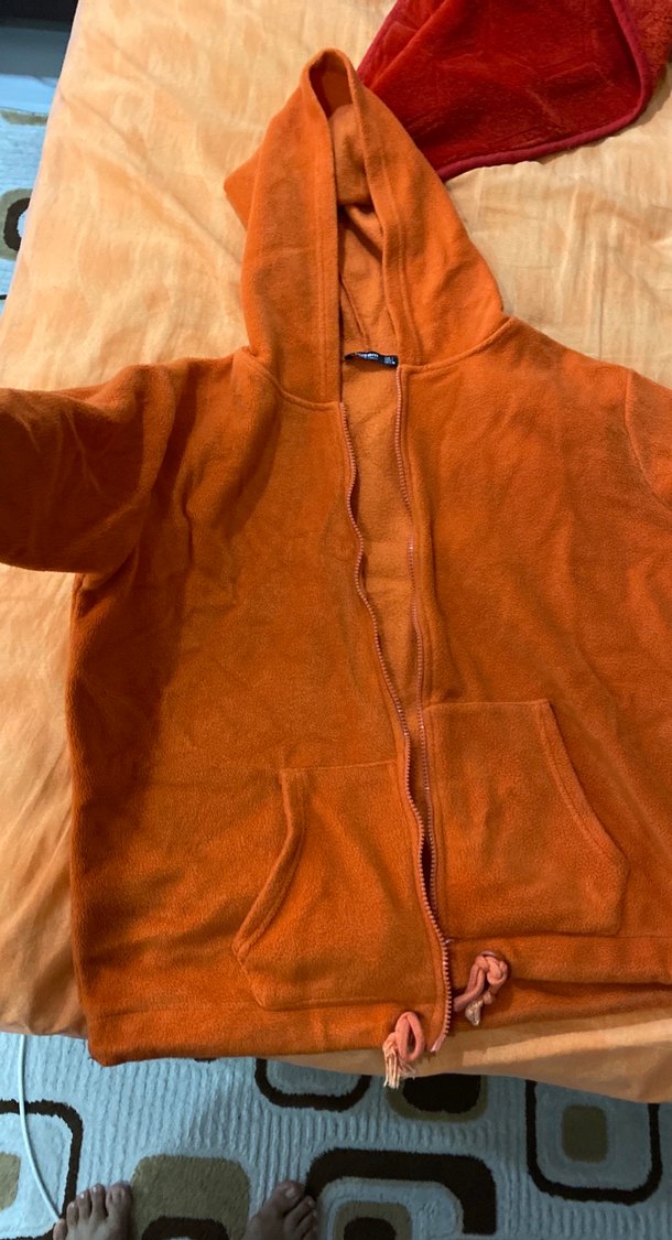Bu kahverengi, kapüşonlu ve fermuarlı erkek polar, uzun kollu ve cepli olup günlük rahat sokak stiline uygundur. ✨
