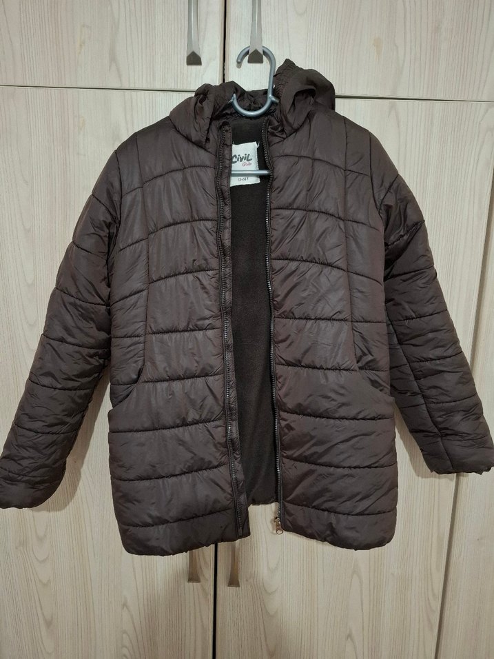 omuzdan ölçüm boy uzunluğu 67 cm, dir.Çocuğun boy ve kilosuna göre değişmekle birlikte 10-11-12-13 yaş için uygundur.Fotoğraflarda gösterdiğim kol altında kaldığı için belli olmayan küçük bir defosu vardır, bir iğneyle düzeltilebilir, başka bir sorunu yoktur. Çok sağlam, kaliteli, rahat ve çok sıcak tutan bir monttur.Biz çok severek giydik, kızım başka montu olmasına rağmen sadece bunu giyiyordu.Fermuarlı ve kapüşonlu, uzun kollu, midi boy kahverengi kız çocuk kışlık mont. Yumuşak ve sıcak kumaştan, günlük sokak stili için uygun.
