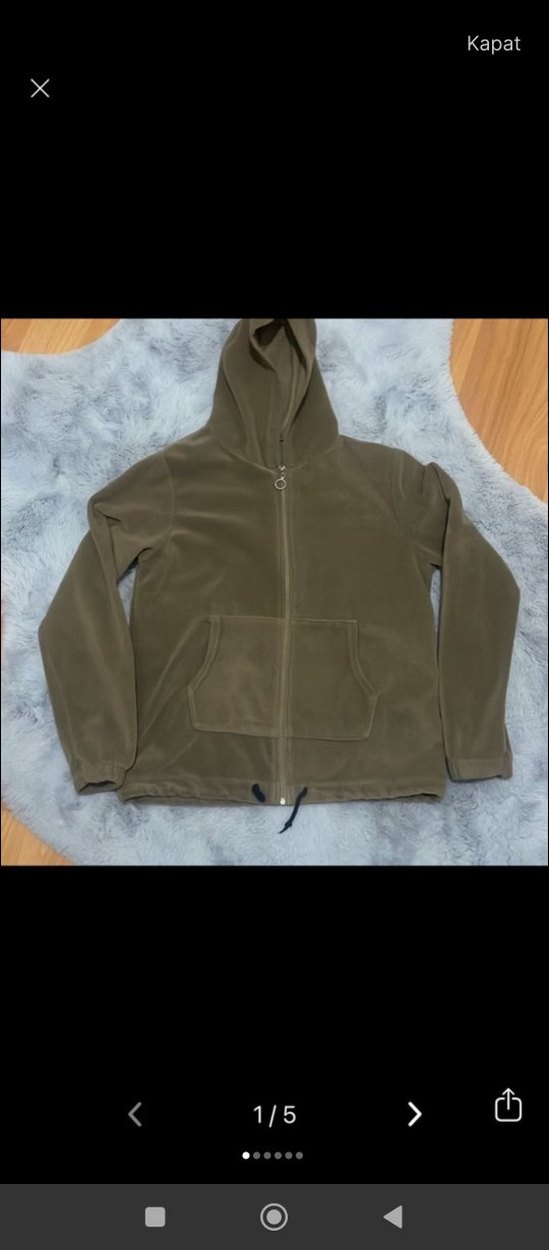 Bu kahverengi kapüşonlu polar, fermuarlı ön kısmı ve normal kesimi ile dikkat çeker. Uzun kollu ve yumuşak dokuludur, dış mekan kullanımı için uygundur. sadece kolunda küçük defosu var