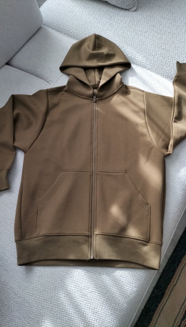 Bu kahverengi kapüşonlu sweatshirt, fermuarlı ve uzun kolludur. Vücuda oturan kesimi ve yumuşak kumaşıyla günlük kullanıma uygundur.