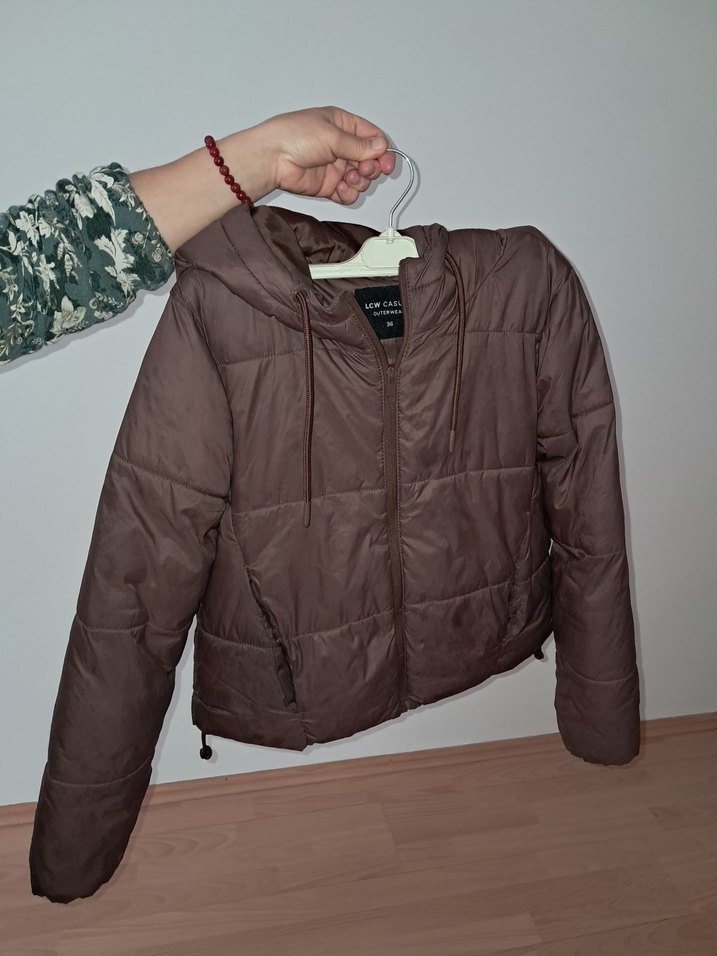 Kahverengi Kapüşonlu Kadın Kısa Mont