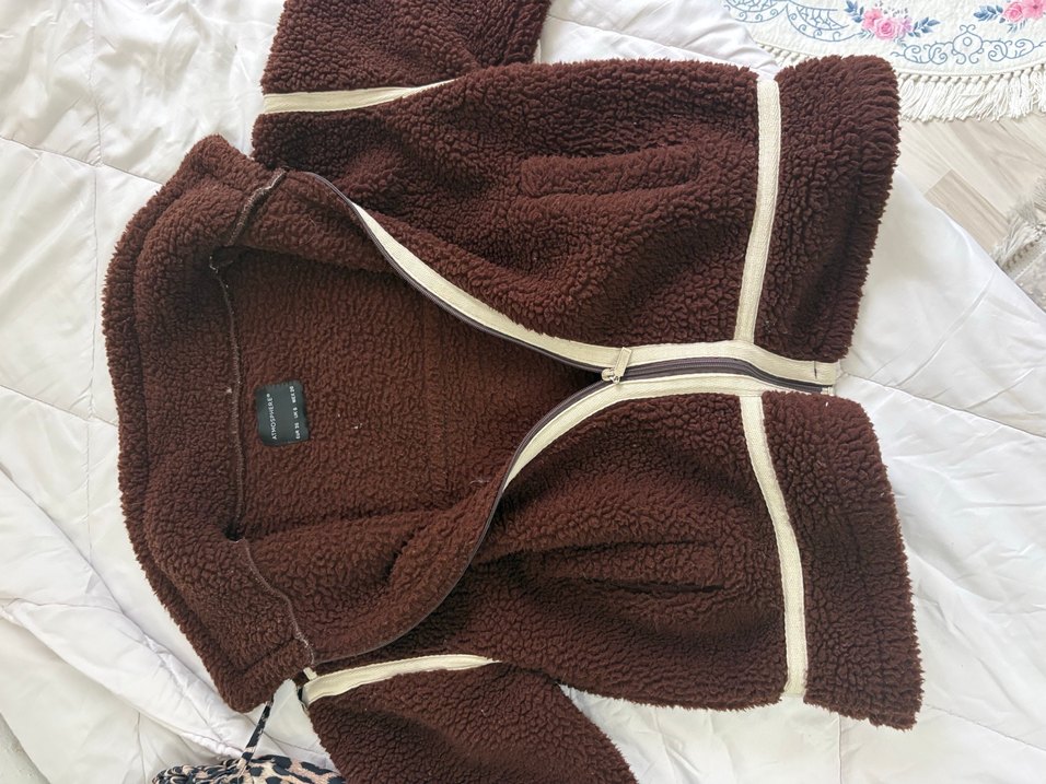 Kahverengi, kapüşonlu, uzun kollu ve orta boy kesim kadın mont. Yumuşak, sıcak kumaştan, kürk detaylı ve rahat sokak stiline uygun. Günlük kullanım için ideal.
