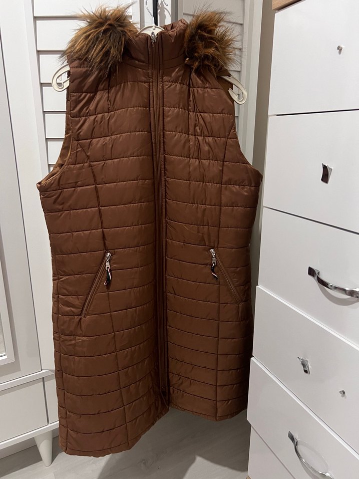 Kahverengi Kapüşonlu Kadın Şişme Yelek