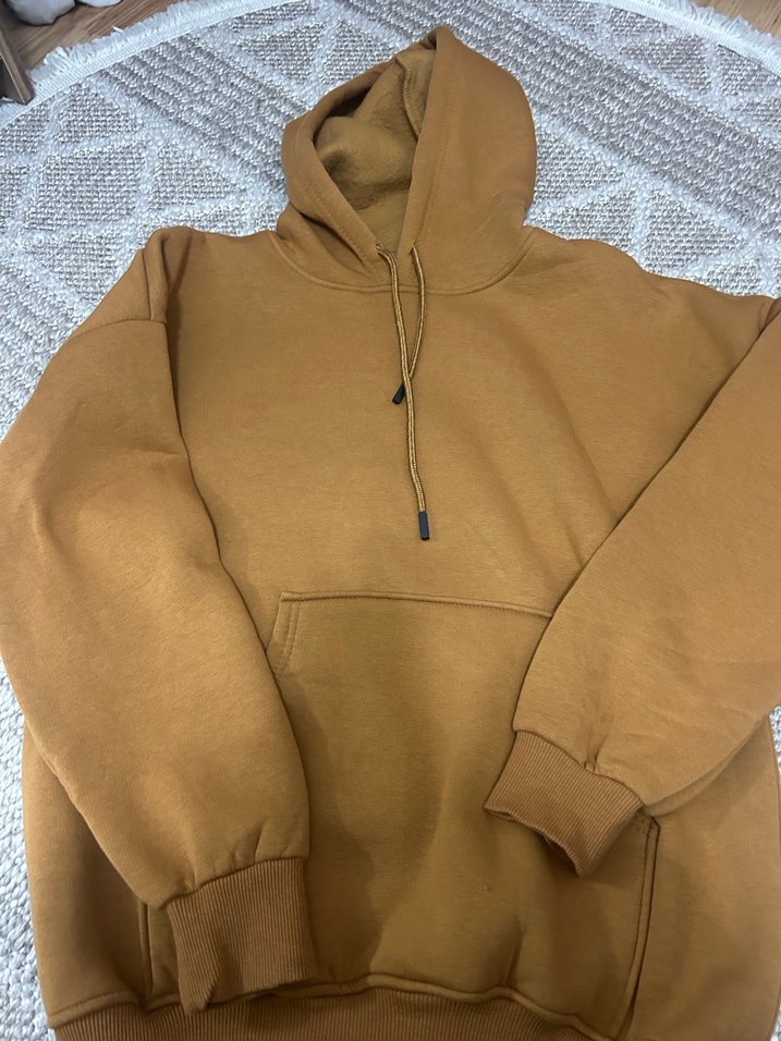 Kahverengi kapüşonlu sweatshirt, rahat kesimi ve uzun kollarıyla yumuşak, sıcak bir kumaşa sahiptir. Günlük kullanıma uygun sade ve konforlu bir modeldir.