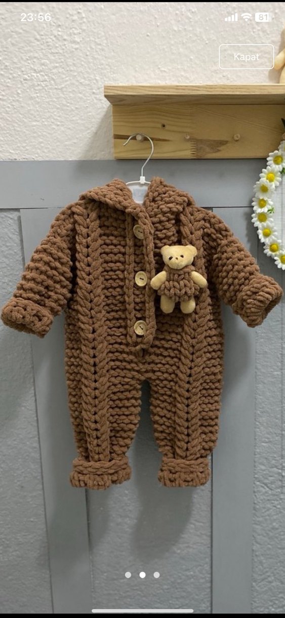 Kahverengi, uzun kollu tulum . Çok fazla kullanılmadı. 9-12 ay