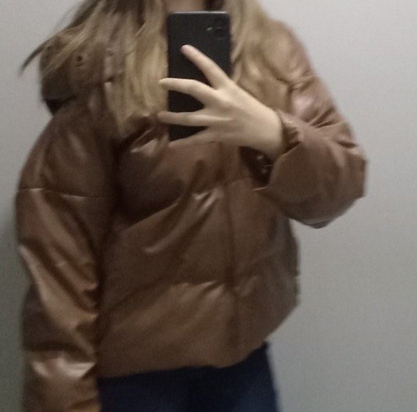Kahverengi Kapüşonlu parlak mont - Görsel 1