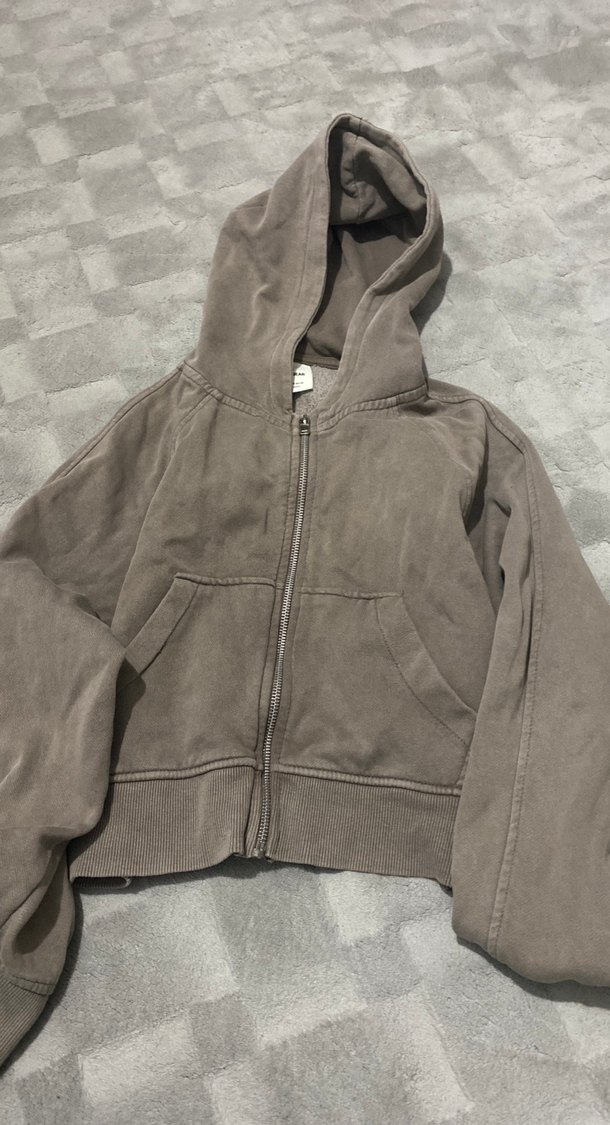 Kahverengi Kapüşonlu Süet Fermuarlı Sweatshirt