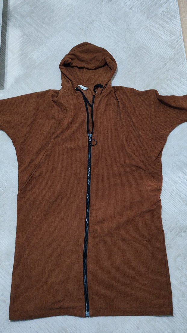 Kahverengi Kapüşonlu Uzun Kadın Ceket