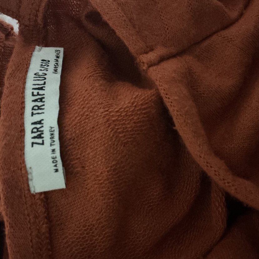 uzun kollu, keten kumaştan örme kahverengi bluz .Rahat kesimi ve desensiz yapısıyla bohem tarzda, konforlu bir seçim.
