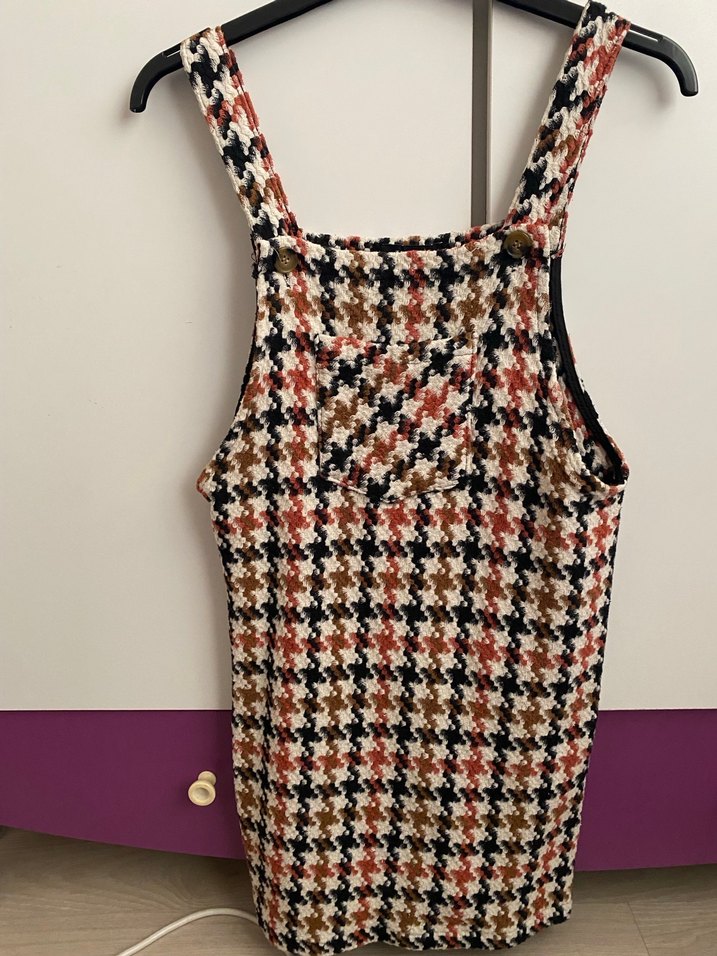 Kahverengi kareli, ayarlanabilir askılı Klasik desenli ve kullanışlı Trendyolmilla elbise