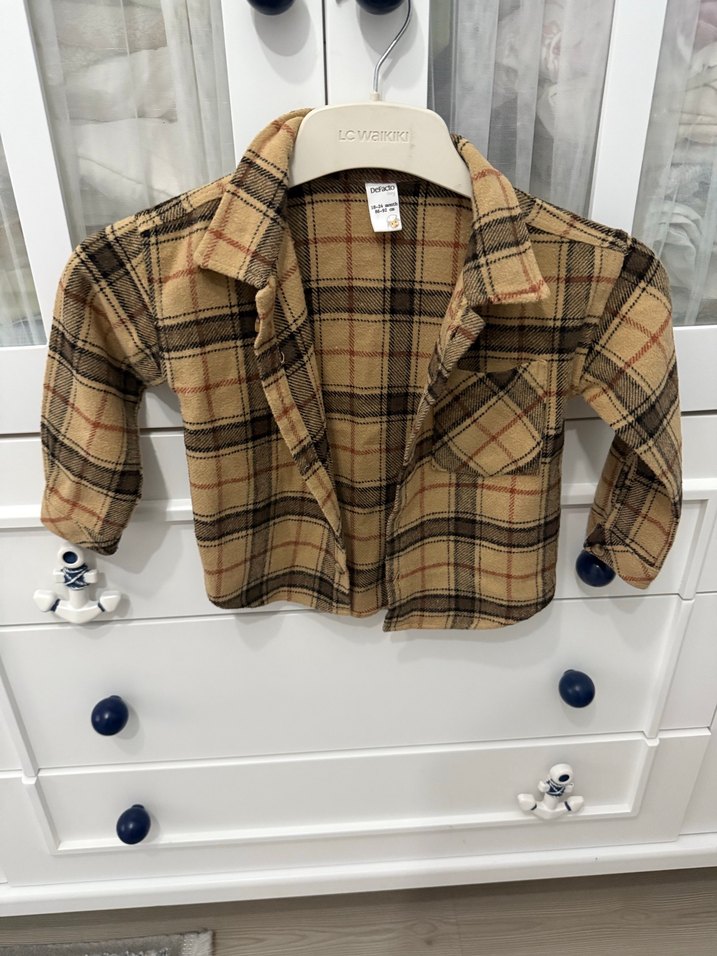 Kahverengi kareli uzun kollu oduncu erkek çocuk gömleği, düğmeli ve kesik yakalıdır. Yumuşak ve sıcak kumaştan, rahat kesimlidir. Trendy günlük stil için uygundur.