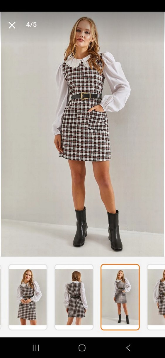 Bir kere giydim. yepyeni. kısa oldugu icin esim giydirmiyor yoksa cok begenerek almistim. Kahverengi kareli mini elbise, kemerli bel detayı ve regular fit kesimi ile günlük sokak stiline uygun. Yumuşak sentetik kumaştan üretilmiştir.