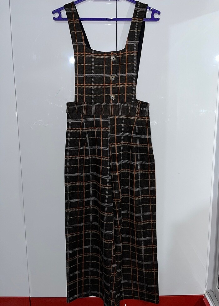 kahverengi salopet. bol, tesettür kullanımına uygun. kumaşı kalın penye. 1 kere giyildi