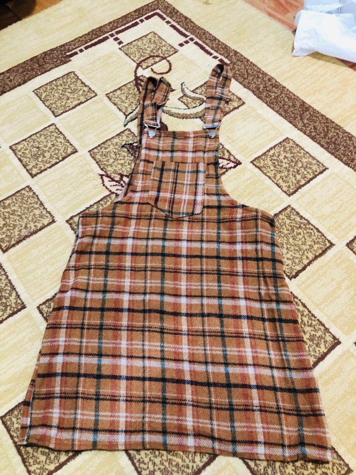 Ayarlanabilir askılı, ön cepli kahverengi kareli slopet yumuşak ve dayanıklı kumaştan üretilmiştir. İade yoktur