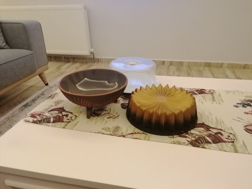 Kahverengi Kek Kalıbı ve Kapaklı Saklama Kabı servis tabağı