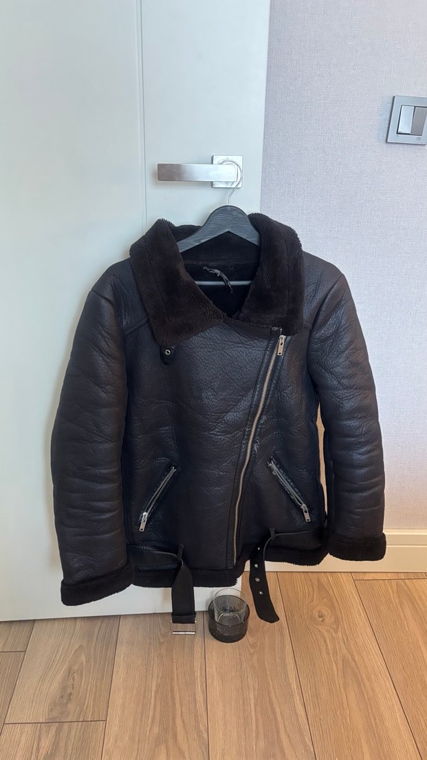 Koyu kahverengi, deri malzemeden yapılmış, kemerli ve yakalı, kayışlı kollara sahip, şık ve rahat kesim biker ceket. ✨Elden cıksın diye ekliyorum . ✨Deformeleri resimde cektiğim gibi , ona gçre almanızı tavsiye ederim . Fiyatlandırmasınıda ona göre yaptım .