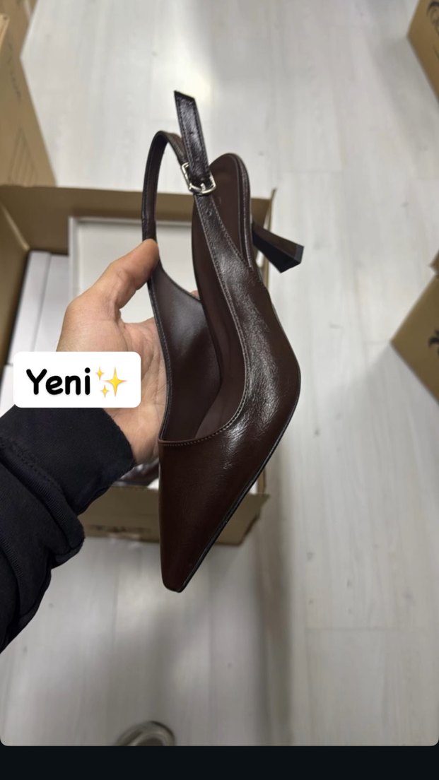 Kahverengi deri, yılan desenli stiletto, kemerli ve ofis için klasik şıklıkta tasarlanmış. ✨
