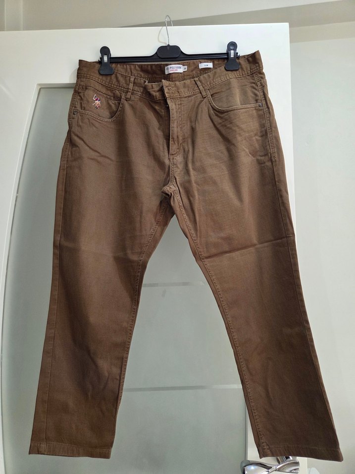 Kahverengi pantolon, kemerli ve slim fit kesimlidir. Günlük kullanıma uygun, desen içermeyen rahat bir sokak stili pantolon.
