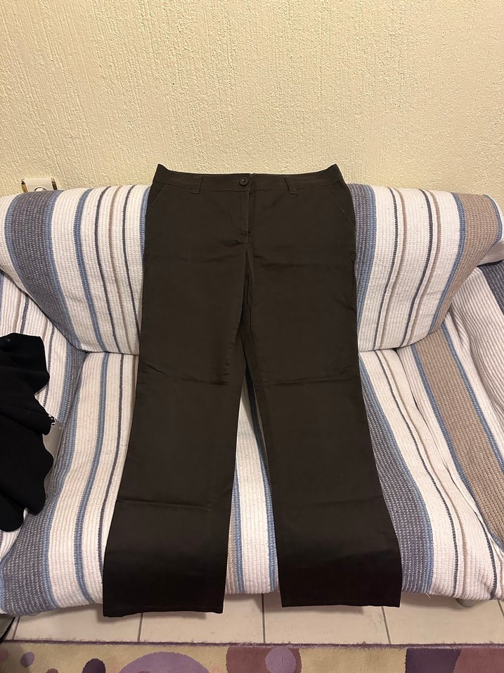 Kahverengi, kemerli, düz desensiz kadın kumaş pantolon, normal boy ve regular fit kesimle günlük kullanıma uygundur.