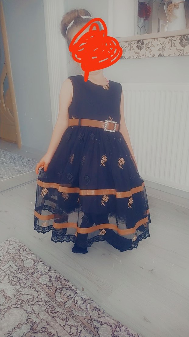 Kahverengi Kemerli Kız Çocuk Elbisesi
