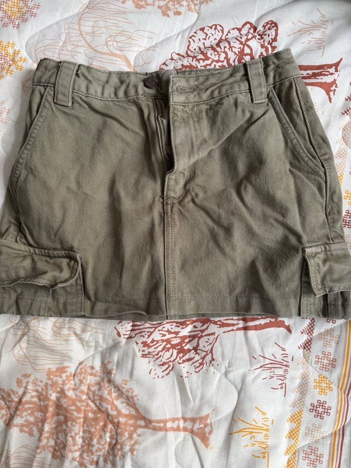 yeşil yan cepli, rahat kesim midi etek