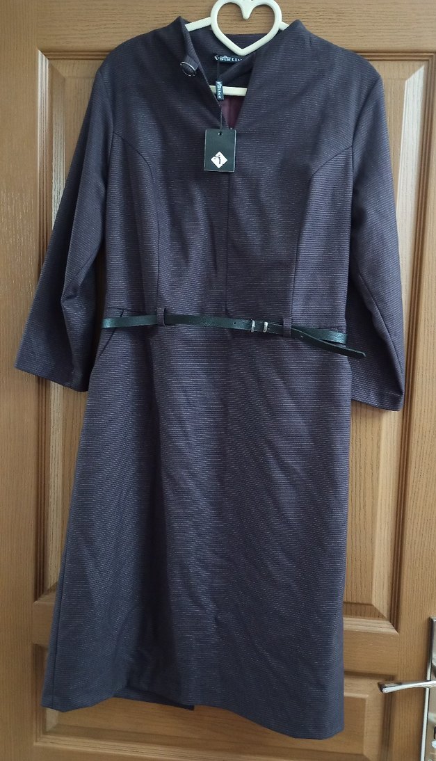 Kahverengi midi elbise, yakası kesimli, askılı kolları ve kemerli beli ile regular fit. Sentetik kumaştan, iş ortamları için uygun, normcore tarzda.ici astarlı,yeni etiketli kumaş elbise,renk koyu mürdüm