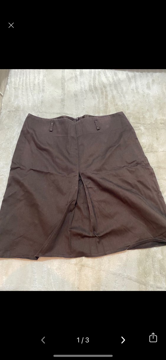 Kahverengi, keten kumaştan yapılmış,etek hiç kullanılmadı tertemizdir 38-40 beden arası olur