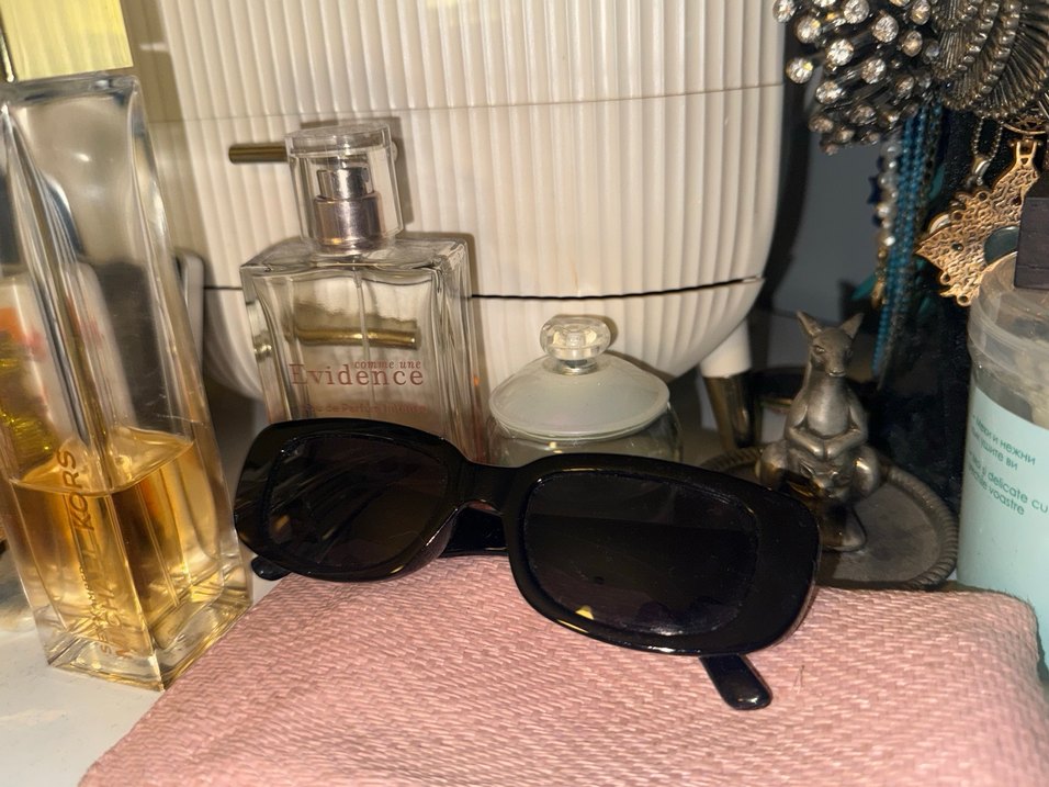 Siyah kemerli, koyu renk camlı, klasik ve retro tarzda dikdörtgen kadın güneş gözlüğü. Bohem stiline uygun, CE işaretli göz koruması sağlar.