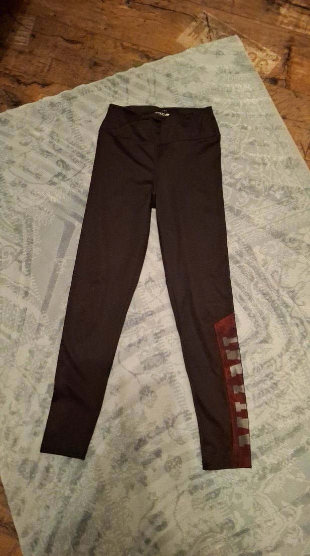 Sentetik kumaştan, kahverengi kemerli ve midi boy spor tayt. Spor ve sokak tarzı için uygun, dar kesim.