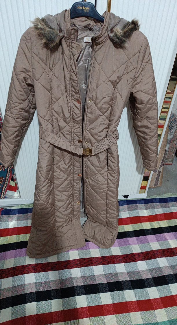 Bu uzun kahverengi kışlık mont, kemerli bel ve kesik yaka detayıyla dikkat çeker. Sentetik kumaştan üretilmiş, rahat ve sıcak tutar. Genç ve rahat sokak modasına uygundur. ❄️