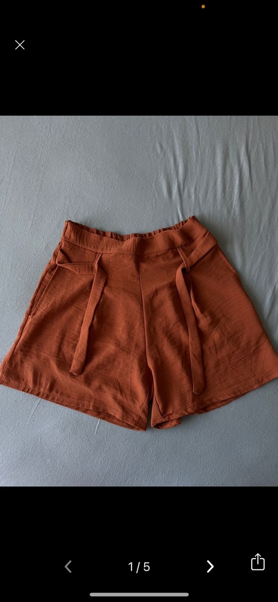 Kahverengi / taba rengi, kemerli ve yüksek bel tasarımlı, bol kesim kısa şort. Minimalist ve bohem tarzda, günlük kullanıma uygun. Az kullanıldı sorunu yok