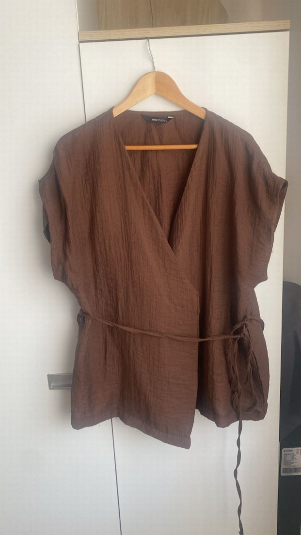Kahverengi Keten Hamile Bluzu