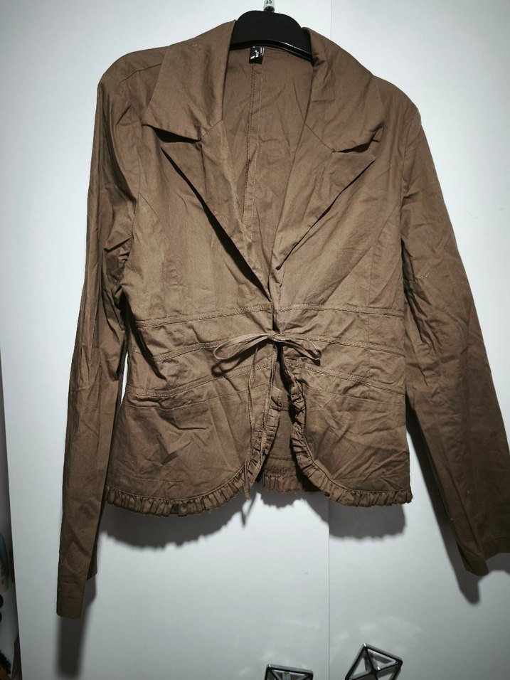 kahverengi Keten Kadın Ceket, Kemerli, Uzun Kollu