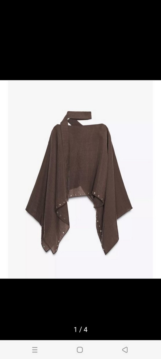 Keten kumaştan, kahverengi, , halter yaka uzun ve bol kesim kadın panço. Günlük kullanıma uygun çağdaş tasarım.