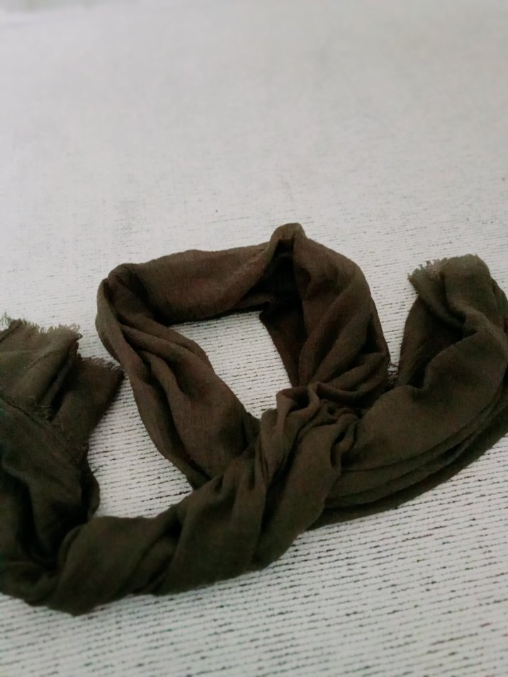 Kahverengi keten kumaştan, salaş ve drapeli yapıya sahip, rahat ve sade bohem tarzda kadın şalı. Gri tonlarda, yumuşak dokulu.